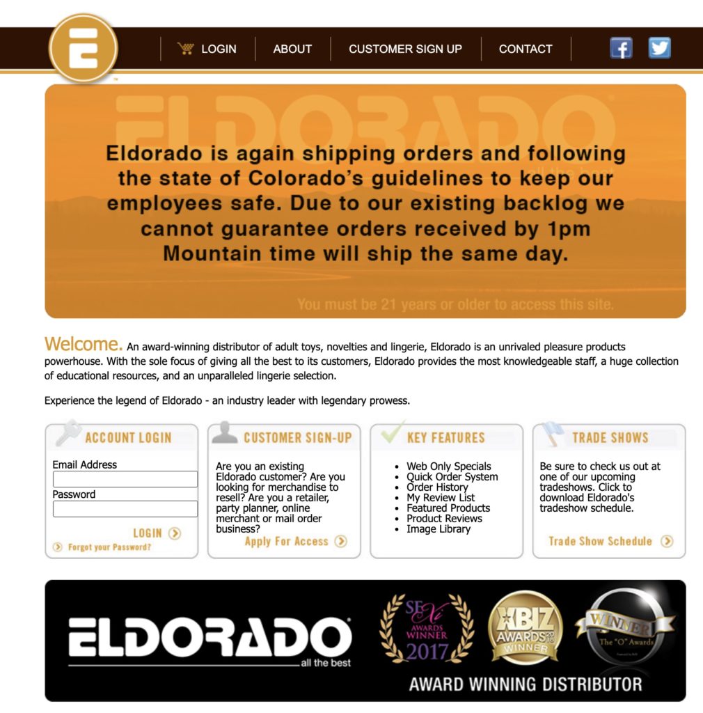 Eldorado, an award-winning distributor specializing in adult toys, lingerie and novelties, is based in Colorado, and they’ve been offering amazing products since 2003.