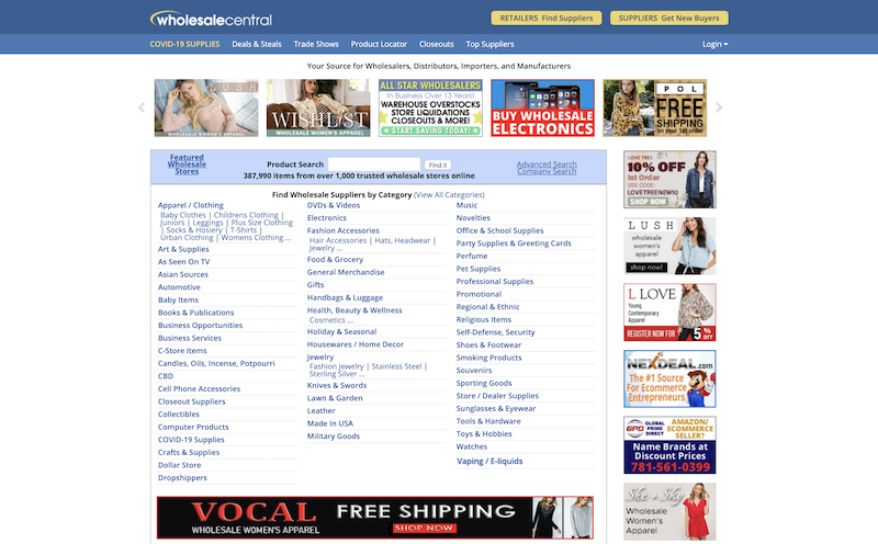 Wholesale Central has been around since 1996 and is a well-known online wholesale option for a lot of B2B companies. One of the best things about Wholesale Central is that it’s easy to navigate and free to use. There’s no need to pay expensive membership fees when you sign up.