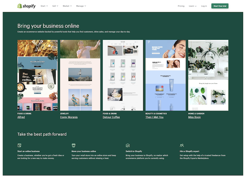 Shopify is another one of the most popular eCommerce platforms for business owners looking to start selling online. Like Wix, it’s very simple and easy to use, with lots of drag and drop options to help you create an online store that looks great and functions well.